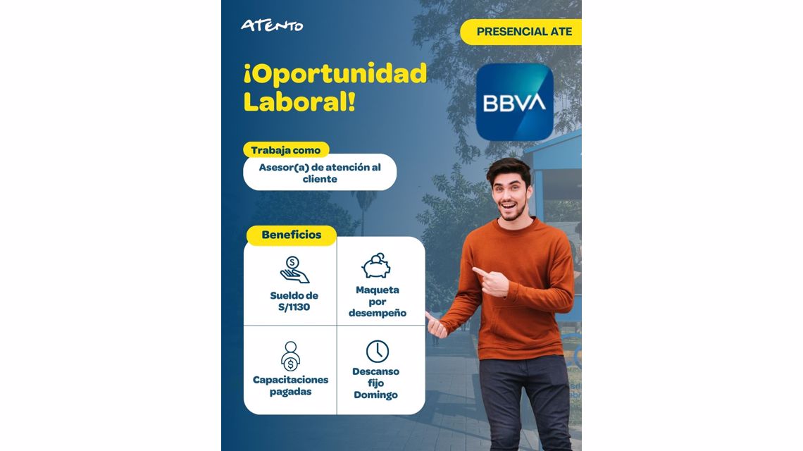 Asesor de Back Office BBVA Descanso Domingo Full Time Sede Ate